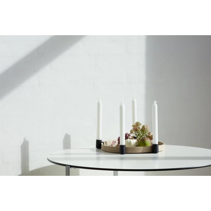 Stilvoll und elegant präsentiert sich der Kerzenhalter Luna MAXI von applicata. Anders Nørgaard schuf den flexibel gestaltbaren Kerzenleuchter und setzte damit den Schwerpunkt auf Funktionalität und Design. Der Kerzenleuchter besteht aus vier Halterungen für Kerzen und einem Tablett aus Eichenholz. Die Kerzenhalter lassen sich beliebig um das Tablett verschieben, abnehmen und aufstecken. Ob zur Weihnachtszeit, im Frühjahr, Sommer oder Herbst – Luna MAXI ermöglicht zahlreiche Möglichkeiten der Nutzung und zwar das ganze Jahr über. Applicata produziert ihre Produkte in kleinen Familienunternehmen in Skandinavien, wo handwerkliche Traditionen über Generationen hinweg lebendig gehalten werden. Skandinavische Architekten, Designer und Künstler entwerfen die einzigartigen Produkte, welche mit Funktionalität, Ästhetik und hoher Qualität überzeugen. Applicata Designartikel sind FSC-Zertifiziert – der Umwelt zuliebe. Entdecken Sie die wunderbare Designwelt von applicata – der Kerzenhalter Luna MAXI wird Sie begeistern.