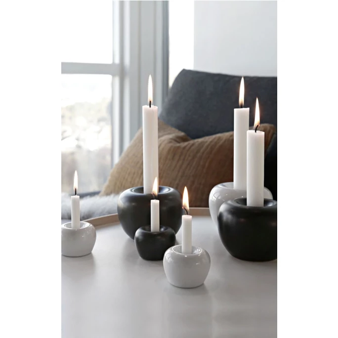 Der extravagante Kerzenhalter Apple wurde von der Designerin Kim Vejsholt für Born in Sweden entworfen und überzeugt durch seine weiche, runde Apfelform. Äpfel sind in Skandinavien sehr beliebt, da es so viele verschiedene Sorten gibt und sie dem kalten Klima trotzen können. Die Früchte sind nicht nur ein Symbol für die Weisheit, sondern stehen auch für das Licht. Er ist aus feinem Steinzeug gefertigt und in matter Optik gestaltet. Schaffen Sie sich mit dem stilvollen Kerzenhalter Apple von Born in Sweden ein gemütliches und wohnliches Ambiente. Wir bieten Ihnen weitere Kerzenständer im Set oder einzeln aus der dekorativen Serie in verschiedenen Größen und unterschiedlichen Farbvarianten in unserem AMBIENDO Shop an. Überzeugen Sie sich selbst!