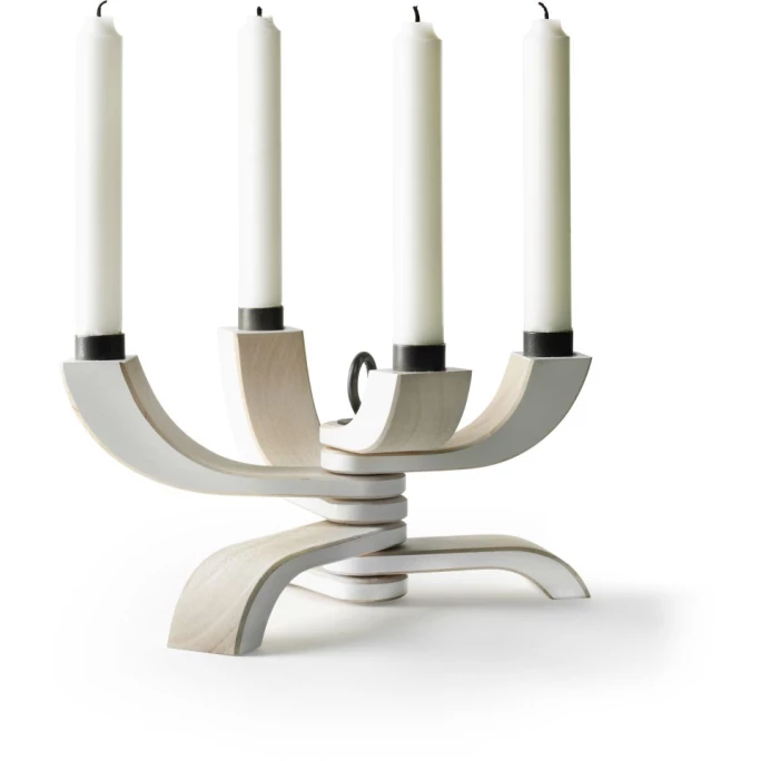Mit Nordic Light von Design House Stockholm, ist es dem Designer Jonas Grundell gelungen, einen Kerzenleuchter zu kreieren, der praktisch ist und wunderschön anzusehen. Das besondere daran, er lässt sich bei Nichtbenutzung zusammenklappen und macht auf der Anrichte oder im Regal eine genauso gute Figur, wie auf dem Esstisch. Die matt lackierten Holzarme sind nämlich so gebogen, daß sie im eingeklappten Zustand sich in einen Block transformieren lassen, das spart Platz und sieht schick aus. Eine Eisenschlaufe bildet das Gelenkzentrum des Kerzenständers Nordic Light und verbindet die 3 Füße mit den 4 Armen, wodurch sie sich individuell einstellen lassen. So haben Sie jedes Mal einen anders aussehenden Kerzenhalter. Sie brauchen nur noch 4 Stabkerzen und schon leuchtet Ihr Zuhause im warmen Kerzenschein. Holen Sie sich diese Design Ikone von Design House Stockholm in diversen Farben nach Hause, so können Sie in jedes Zimmer eine besondere Stimmung zaubern.