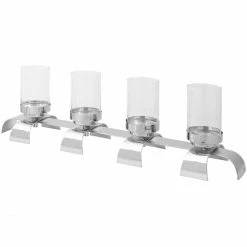 Mit den AARON Teelicht- und Kerzenhaltern von Fink sorgen Sie für einen stilvollen Eyecatcher in Ihrem Zuhause! Egal ob im Alltag, auf der festlich dekorierten Tafel oder zur Weihnachtszeit: Der 4-flammige, handgefertigte AARON Kerzenhalter begeistert durch ein modernes Design aus vernickeltem Aluminium mit zylinderförmigem Glasaufsatz. Durch das mundgeblasene, bodenlose Kerzenglas ist jede Stumpenkerze perfekt vor Zugluft, Schmutz- und Staubpartikeln geschützt, während die glänzende Optik dem Fink Kerzenhalter einen edlen Touch verleiht. AARON lässt sich hervorragend kombinieren, passt zu jeder zeitgemäßen Wohnraumeinrichtung und ist auch als 1-flammiger Stumpenkerzenhalter und als kleinere Variante für Teelichte in zwei verschiedenen Größen erhältlich. Lassen Sie sich von der tollen Optik und der hochwertigen Verarbeitung begeistern und bringen mit dem 4-flammigen AARON Kerzenhalter von Fink stimmungsvolle Lichtakzente in Ihr Zuhause!