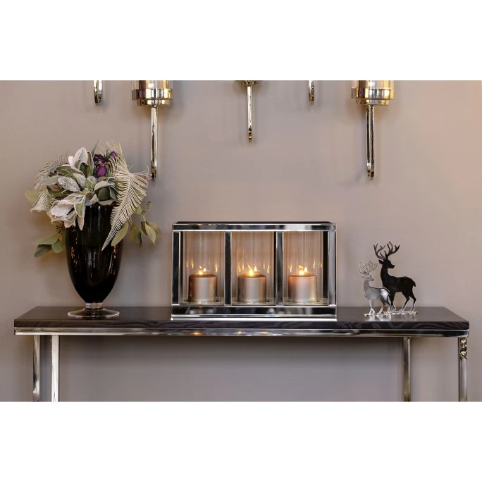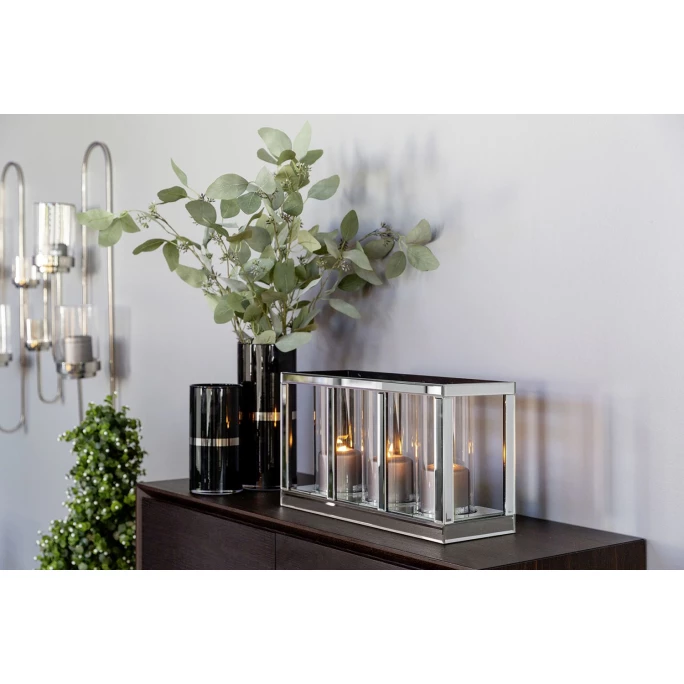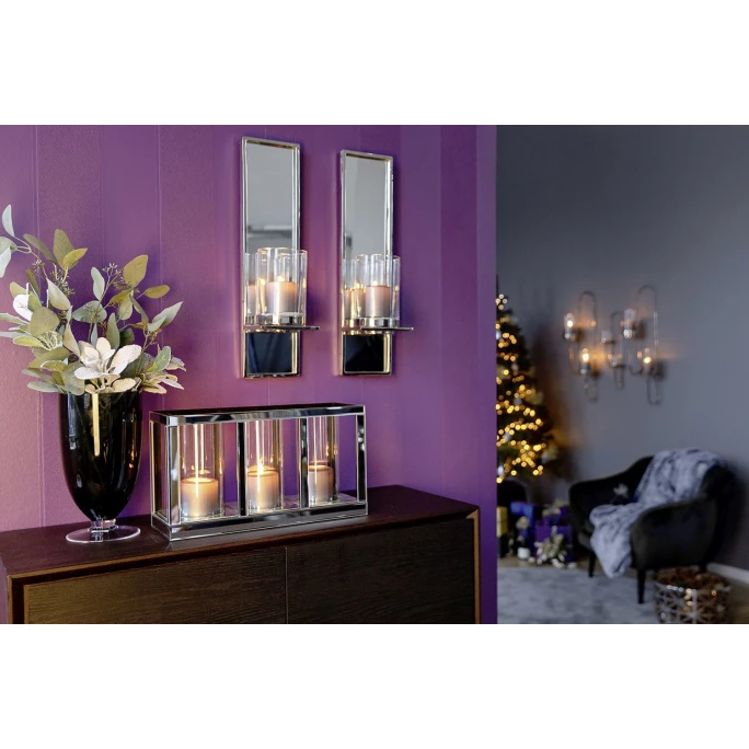 Verspiegeltes Kristallglas mit Details im Facettenschliff: Der 3-flammige DILARA Kerzenhalter von Fink überzeugt durch ein geometrisches und geradliniges Design, das Ihnen vielseitige Deko-Möglichkeiten bietet. Egal ob im Alltag, auf der festlich dekorierten Tafel oder zur Weihnachtszeit: Der handgefertigte Stumpenkerzenhalter passt einfach zu jeder zeitgemäßen Wohnraumeinrichtung und lässt sich hervorragend kombinieren. Und wenn Sie es gerne perfekt mögen: Hier im Shop bietet AMBIENDO Ihnen – passend zu dem 3-flammigen Kerzenhalter – auch den 4-flammigen DILARA Teelichthalter und das elegante DILARA Windlicht aus dem Hause Fink an. Überzeugen Sie sich selbst und kreieren mit dem 3-flammigen DILARA Kerzenhalter von Fink Ihre ganz individuelle und stimmungsvolle Dekoration. Sie werden begeistert sein!