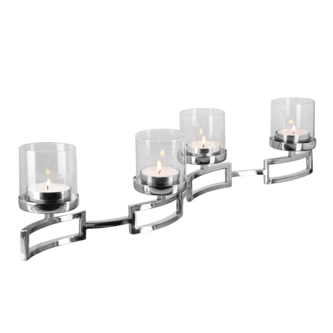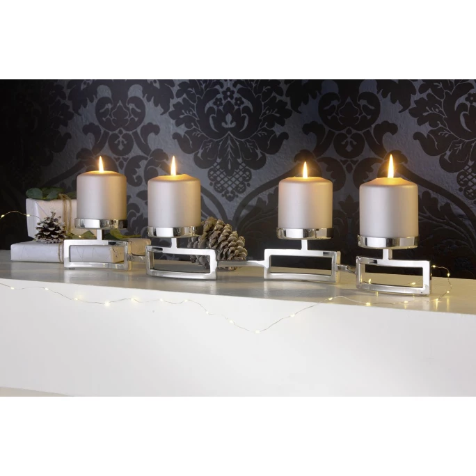 Der stilvolle Kerzenleuchter HOMMAGE von Fink ist die passende Dekoration für jede Jahreszeit. Er besteht aus poliertem Edelstahl und ist mit vier Kerzenhalterungen, welche in länglicher, geometrischer Form angeordnet sind, ausgestattet. Diese eignen sich sowohl für Stumpenkerzen als auch für Maxi-Teelichter und können praktischerweise mit oder ohne Glas verwendet werden. So ergeben sich vielfältige Dekorationsmöglichkeiten, um ein stimmungsvolles Lichtambiente zu schaffen. Wir bieten Ihnen das trendige Design-Objekt in verschiedenen Varianten in unserem AMBIENDO Shop an. Verschönern Sie mit dem modernen 4-flammigen Kerzenleuchter HOMMAGE von Fink Ihr Zuhause im Innen- sowie Außenbereich und entdecken Sie auch die weiteren Lifestyle-Produkte der luxuriösen Qualitätsmarke!
