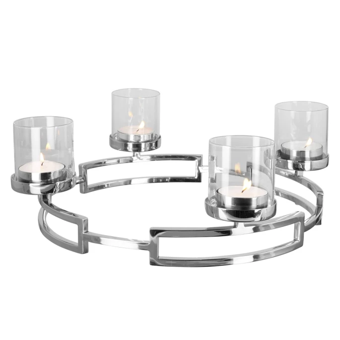 Der stilvolle Kerzenleuchter HOMMAGE von Fink ist die passende Dekoration für jede Jahreszeit. Er besteht aus poliertem Edelstahl und ist mit vier Kerzenhalterungen, welche kreisförmig angeordnet sind, ausgestattet. Diese eignen sich sowohl für Stumpenkerzen als auch für Maxi-Teelichter und können praktischerweise mit oder ohne Glas verwendet werden. So ergeben sich vielfältige Dekorationsmöglichkeiten, um ein stimmungsvolles Lichtambiente zu schaffen. Wir bieten Ihnen das trendige Design-Objekt in verschiedenen Größen und Varianten in unserem AMBIENDO Shop an. Verschönern Sie mit dem modernen 4-flammigen Kerzenleuchter HOMMAGE von Fink Ihr Zuhause im Innen- sowie Außenbereich und entdecken Sie auch die weiteren Lifestyle-Produkte der luxuriösen Qualitätsmarke!