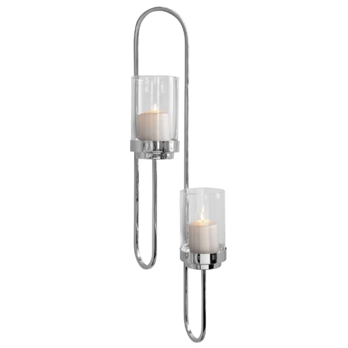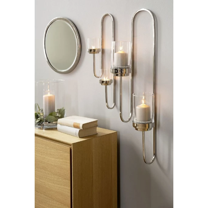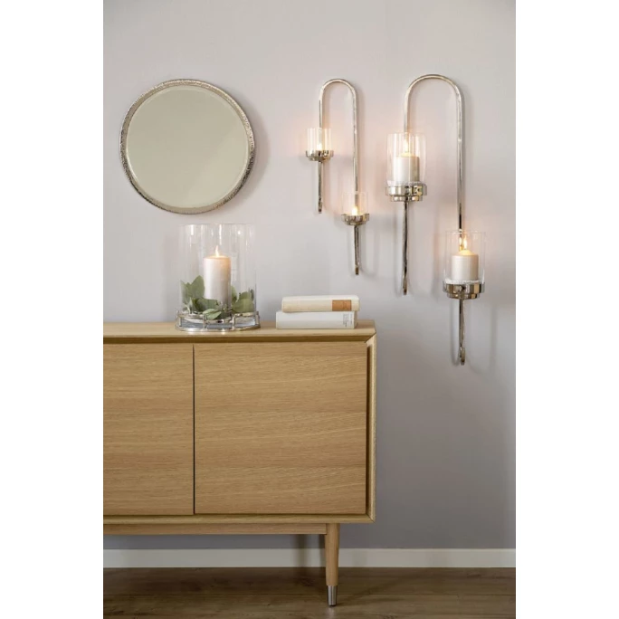 Der stilvolle Wand-Kerzenhalter SAXON von Fink ist die passende Dekoration für jede Jahreszeit. Er besteht aus vernickeltem Edelstahl und ist daher besonders pflegeleicht sowie robust. Die moderne Wanddekoration ist mit zwei Glashalterungen ausgestattet, womit Sie Stumpenkerzen gekonnt in Szene setzen können. Somit schaffen Sie ein stimmungsvolles und angenehmes Lichtambiente. Wir bieten Ihnen das trendige Design-Objekt in zwei verschiedenen Varianten in unserem AMBIENDO Shop an. Verschönern Sie mit dem modernen 2-flammigen Wand-Kerzenhalter SAXON von Fink Ihr Zuhause und entdecken Sie auch die weiteren Lifestyle-Produkte der Qualitätsmarke!