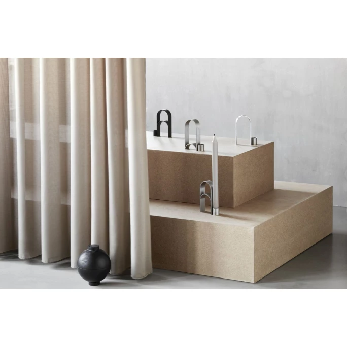Ein einzelner Bogen. Eine geometrische Grundform. Skulptural, elegant und attraktiv. Der Arch Kerzenhalter Vol. 3 von Kristina Dam Studio ist ein extravagantes Schmuckstück, das in Ihrem Wohn- oder Essbereich besondere Akzente setzt. Aus pulverbeschichtetem Stahl gefertigt, lässt sich außen eine einzelne Stabkerze anbringen und wundervoll in Szene setzen. Aber auch ohne Kerze ist der Kristina Dam Studio Halter ein tolles Dekorations-Objekt, das ganz bestimmt alle Blicke auf sich zieht. Durch das schlichte Design passt Arch zu wirklich jeder Wohnraumeinrichtung und ist zudem eine stilvolle Geschenkidee für jeden Liebhaber minimalistischen Designs. Der Kristina Dam Studio Bogenkerzenhalter ist in drei unterschiedlichen Ausführungen und zwei Farbvarianten hier bei AMBIENDO erhältlich. Geben Sie Ihrem Zuhause mit dem Arch Kerzenhalter Vol. 3 einen individuellen und designstarken Touch!
