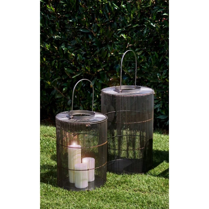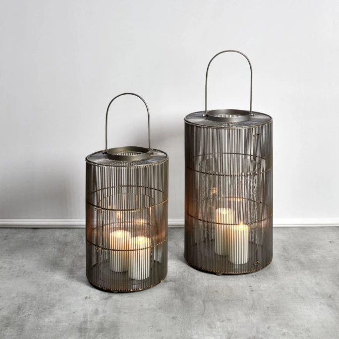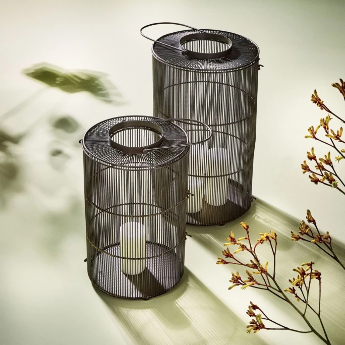 Die Kazumi Laternen von Lambert könnten ihren Ursprung im alten Japan haben, sind aber ein kleines Meisterwerk heutiger Handwerkskunst. Aus feinen Eisendrahtstäben handwerklich zusammengesetzt, begeistert Kazumi jeden Betrachter auf Anhieb. Das Metall wurde in sechs verschieden Arbeitsschritten behandelt, um es weitgehend vor Verwitterung zu schützen. Dennoch sollte die pulverbeschichtete Kazumi Laterne nicht ständig Wind und Wetter ausgesetzt sein, denn die vielen Lötpunkte, die das Werkstück zusammenhalten, können korrodieren. Wachsreste lassen sich mit warmem Wasser entfernen. Scharfe Gegenstände und schleifende Schwämme zerkratzen die Oberfläche und dürfen nicht verwendet werden. Lambert steht für Liebe zum Detail, jedes Produkt der Kollektionen besitzt seine ganz eigene Herstellungsgeschichte. Mit großer Sorgfalt werden die Materialien ausgewählt und verarbeitet, so gehen Handwerkskunst und Kunsthandwerk eine tiefe Verbindung ein und es entstehen individuelle Objekte, die weltweit Begeisterung finden. Genießen Sie tolle Abende in schönem Kerzenschein, mit dem Kerzenhalter Kazumi von Lambert.
