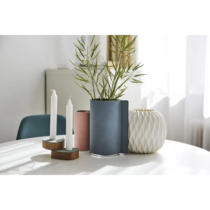 Diese zwei gehören einfach zusammen! Das Lind DNA CURVE Nupo Kerzenhalter 2er-Set kommt in einem handgefertigten Design aus Eiche und recyceltem Leder daher. Ein versteckter Magnet in der Eiche ermöglicht es Ihnen, die Kerzenhalter je nach persönlichem Geschmack und Stil, auf viele verschiedenen Weisen zu kombinieren und zu platzieren. Zwei, drei oder vier CURVE Kerzenhalter können so zu einem Deko-Objekt kombiniert werden, oder separat stehen. Die 1,6 mm starke Oberfläche Nupo ist eine der beliebtesten Lind DNA Strukturen, denn sie überzeugt mit einer exklusiven, wildlederartigen Oberfläche, kombiniert mit einer weichen Struktur. Nupo ist elegant, zeitlos und die perfekte Wahl für fast jeden Einrichtungsstil. Mit dem Lind DNA CURVE Nupo Kerzenhalter 2er-Set statten Sie Ihr Zuhause perfekt aus.