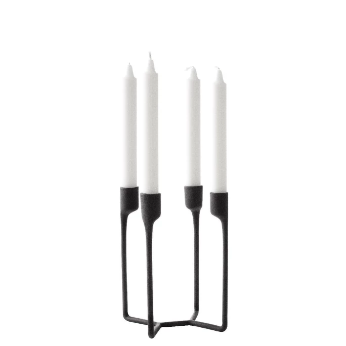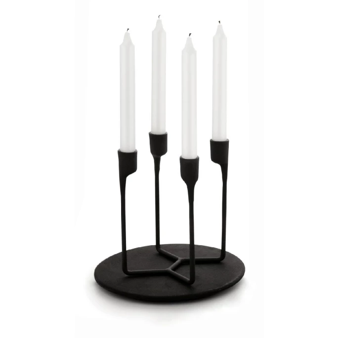 In der nordischen Mythologie bedeutet Heima ‚Heim‘ oder ‚Welt‘, gleichzeitig ist Heima aber auch der Name einer Serie gusseiserner Kerzensta?nder von Normann Copenhagen nach einem Entwurf von Francis Cayouette. Normann Copenhagen pra?sentiert vier Kerzensta?nder und einen praktischen Untersatz. Die nordische Tradition, Kerzenlicht zur Beleuchtung zu verwenden, macht das Wesen der Serie Heima aus, die mit dem prestigetra?chtigen Designpreis IF Product Design Award 2010 ausgezeichnet wurde. Heima-Kerzensta?nder sind fu?r Teelichter, quadratische Kerzen, einfache Haushaltskerzen und als vierarmiger Kerzenleuchter erha?ltlich. Francis Cayouette ließ sich von der nordischen Kultur der Beleuchtung mit Kerzenlicht und der Kunstgewerbebewegung der fu?nfziger Jahre, die mit Gusseisen arbeitete, inspirieren und schuf Kerzensta?nder mit einem wiedererkennbaren Design, die der gewerblichen Handwerkskunst und nordischen Traditionen Tribut zollen. Die unebene, fast kalte Oberfla?che verleiht den Kerzensta?ndern Charakter, wa?hrend die abgerundeten Formen sich zu einem modernen Design vereinen. Bestellen Sie den vierarmigen Kerzenhalter von Normann Copenhagen und lassen Sie sich begeistern!
