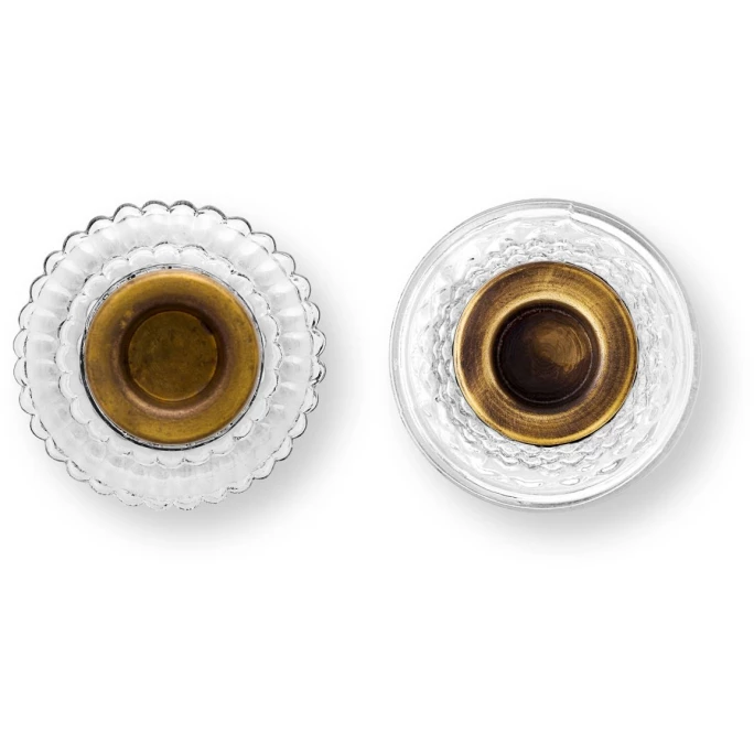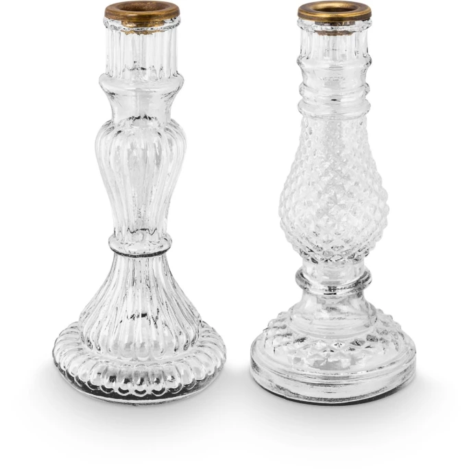 Mit dem liebevoll gestalteten Glass Kerzenhalter-Set von Pip Studio setzen Sie besondere Akzente in Ihrem Zuhause. Aus robustem Glas gefertigt, ist die Oberfläche mit unterschiedlichen Strukturen versehen. Der oben eingesetzte, goldfarbene Metallhalter rundet das optische Gesamtbild von Glass dabei perfekt ab und sorgt für eine besonders stilvolle Note. Egal ob im Alltag oder auf der festlich dekorierten Tafel: Die Pip Studio Kerzenhalter passen einfach immer und lassen sich hervorragend mit den farbenfrohen Geschirrserien und Wohntextilien von Pip Studio kombinieren. Lassen Sie sich von dem tollen Look begeistern und machen sich oder einem lieben Menschen mit dem Glass Kerzenhalter 2er-Set von Pip Studio eine besondere Freude!