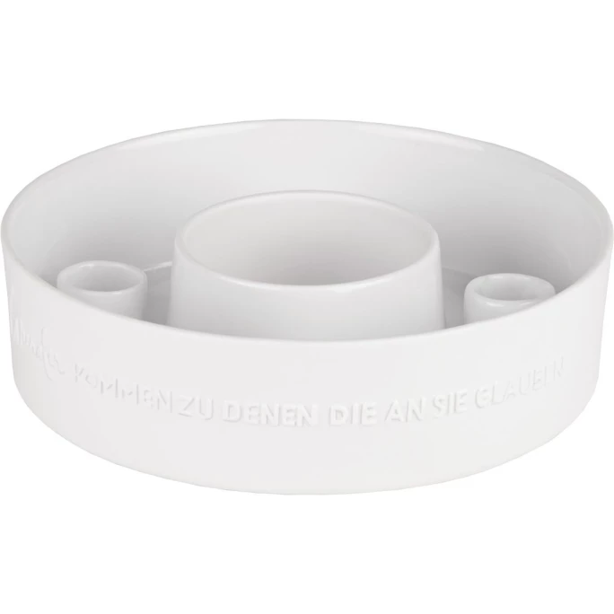 Nicht nur zu Weihnachten eine leuchtende Idee! Aus teilglasiertem Porzellan gefertigt, punktet der LIVING Wunder kommen Stabkerzen-Porzellankranz von räder durch ein tolles und praktisches Design. Ein runder Teller mit erhöhtem Rand, auf dem vier Stabkerzen Platz finden. Der geprägte Spruchtext “Wunder kommen zu denen die an die glauben” auf der Vorderseite der Kerzenschale rundet das optische Gesamtbild dabei perfekt ab. Egal ob im Alltag, auf der festlich dekorierten Tafel oder als moderner Adventskranz: Der Wunder kommen Kerzenhalter passt einfach immer, lässt sich durch den schlichten Look hervorragend kombinieren und bietet Ihnen die Möglichkeit ganz individuelle Dekoration zu kreieren. Lassen Sie sich begeistern und machen sich oder einem lieben Menschen mit dem LIVING Wunder kommen Stabkerzen-Porzellankranz von räder eine besonders schöne und ausgefallene Freude!