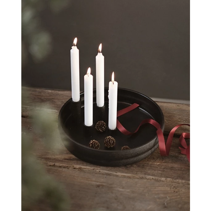 Elegant, zeitlos und vielseitig einsetzbar! Aus matter, unbehandelter Keramik handgefertigt, punktet der unifarbene BOLMEN Kerzenhalter von Storefactory durch ein tolles und praktisches Design. Ein runder Teller mit erhöhtem Rand, auf dem vier Stabkerzen Platz finden – einfach perfekt! Egal ob im Alltag, auf der festlich dekorierten Tafel oder als moderner Adventskranz: BOLMEN passt einfach immer, lässt sich durch den schlichten Look hervorragend kombinieren und bietet Ihnen die Möglichkeit ganz individuelle Dekoration zu kreieren. Da jeder BOLMEN Kerzenhalter von Hand gefertigt wird, kann es zu kleinen Punkten oder Vertiefungen in der Keramik kommen. Dies ist jedoch kein Manko, sondern macht jeden Storefactory Kerzenteller zu einem echten Unikat. Zur Reinigung des Kerzenhalters können Sie einen handelsüblichen “Schmutzradierer” verwenden. Dieser hinterlässt keine Rückstände und reinigt die unbehandelte Oberfläche besonders schonend. Lassen Sie sich von dem stilvollen Design begeistern und bringen mit dem BOLMEN Kerzenhalter von Storefactory skandinavisches Flair in Ihr Zuhause!