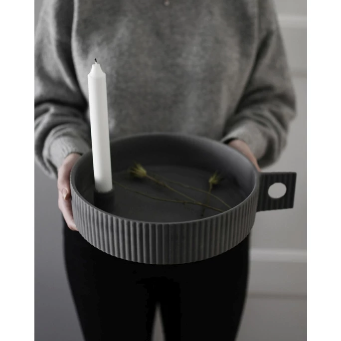 Stilvolles Design mit Längsstreifen und kleinem Griff: Der LIDABY Kerzenhalter large von Storefactory ist einfach ein echter Hingucker! Aus matter, unbehandelter Keramik handgefertigt, punktet der unifarbene LIDABY Kerzenhalter large durch ein praktisches Design. Ein rundes, befüllbares Tablett mit Griff, in das eine Stabkerze hineingestellt werden kann – einfach perfekt! Da jeder LIDABY Kerzenhalter large von Hand gefertigt wird, kann es zu kleinen Punkten oder Vertiefungen in der Keramik kommen. Dies ist jedoch kein Manko, sondern macht jeden Storefactory Kerzenteller zu einem echten Unikat. Zur Reinigung des Kerzenhalters können Sie einen handelsüblichen “Schmutzradierer” verwenden. Dieser hinterlässt keine Rückstände und reinigt die unbehandelte Oberfläche besonders schonend. Lassen Sie sich von dem stilvollen Design begeistern und bringen mit dem LIDABY Kerzenhalter large von Storefactory skandinavisches Flair in Ihr Zuhause!