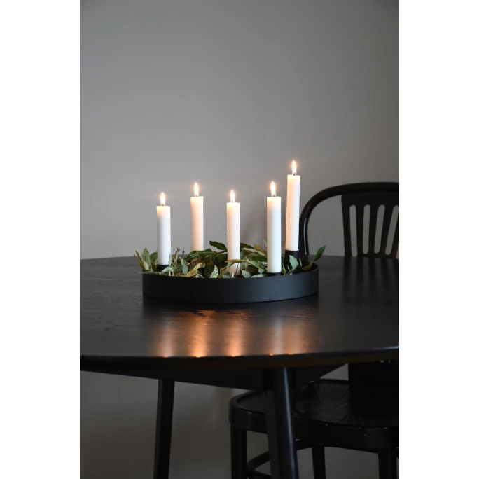 Sorgt garantiert für stimmungsvolle Lichtakzente und einen echten Eyecatcher! Aus robustem, pulverbeschichtetem Metall handgefertigt, punktet der SUND MAGNETIC Kerzenhalter durch ein rundes Design mit fünf unterschiedlich hohen und versetzbaren Kerzenhaltern. Ja, Sie haben richtig gelesen: Jeder Kerzenhalter verfügt im unteren Teil über einen kleinen Magneten und lässt sich daher schnell, einfach und ganz individuell auf dem Kerzenteller platzieren – einfach genial! Zusätzlich können Sie – dank des hohen Randes – Blüten, Zweige, Kugeln oder Streudeko auf das Kerzentablett legen und erhalten so eine perfekte Dekoration für jede Jahreszeit. Und mit unterschiedlich farbigen Kerzen und kleinen Cupcakes, Muffins oder Gugelhupfen bestückt, wird SUND MAGNETIC rund zu einem perfekten Geburtstagsgeschenk! Bitte achten Sie darauf, Ihren Kerzenhalter anzuheben, wenn Sie ihn versetzen, um Kratzer auf dem Metall und dem Untergrund zu vermeiden. Und ganz wichtig: Stellen Sie die einzelnen, magnetischen Kerzenhalter zur Sicherheit immer mindestens 7 cm voneinander und von der Wand entfernt auf. Lassen Sie sich von dem stilvollen Design begeistern und bringen mit dem SUND MAGNETIC Kerzenhalter rund von Storefactory skandinavisches Flair in Ihr Zuhause!