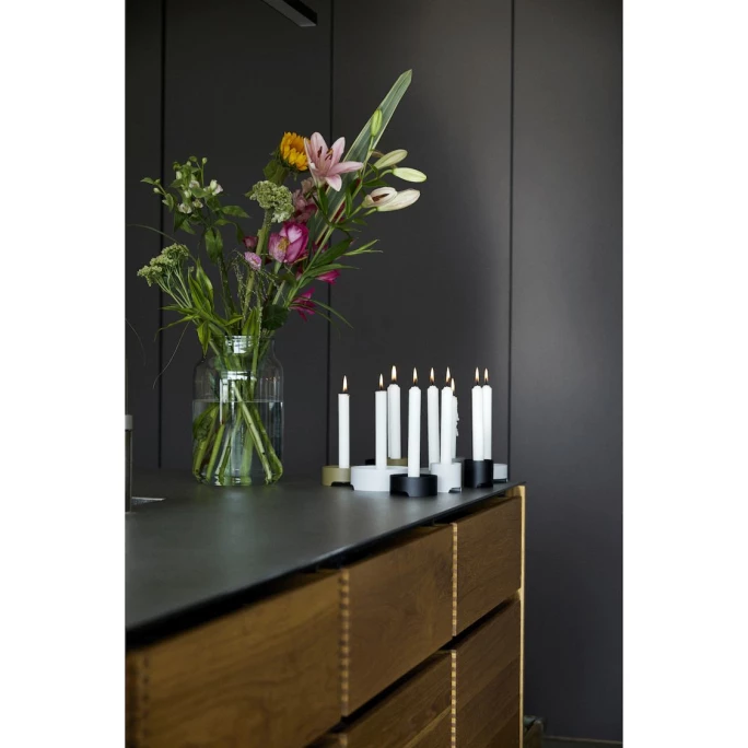 Bringen Sie mit hübschen, ultra-schlichten Kerzenleuchtern Singles von ZONE Denmark Licht in die dunkle Jahreszeit. Das matt lackierte Metall der Leuchter sorgt für Kontrast zum weichen Design.